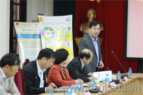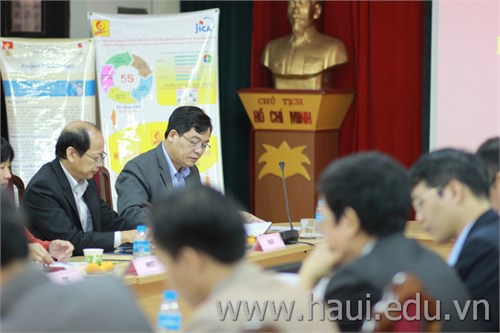 Dưới sự điều hành của Trưởng Ban Quản lý dự án, cuộc họp đã lắng nghe TS. Hà Xuân Quang - Phó Hiệu trưởng Nhà trường, Phó Trưởng Ban Quản lý dự án HaUI-JICA báo cáo tóm tắt kết quả thực hiện và đánh giá các hoạt động đã thực hiện, kế hoạch hoạt động trong thời gian tới; từng trưởng nhóm đầu ra báo cáo tình hình hoạt động cụ thể; phần thảo luận, đóng góp ý kiến của đại diện hai trường CĐ nghề Kỹ thuật Công nghệ, CĐ nghề Kỹ thuật Công nghệ thành phố HCM, các thành viên dự án và các chuyên gia Nhật Bản.