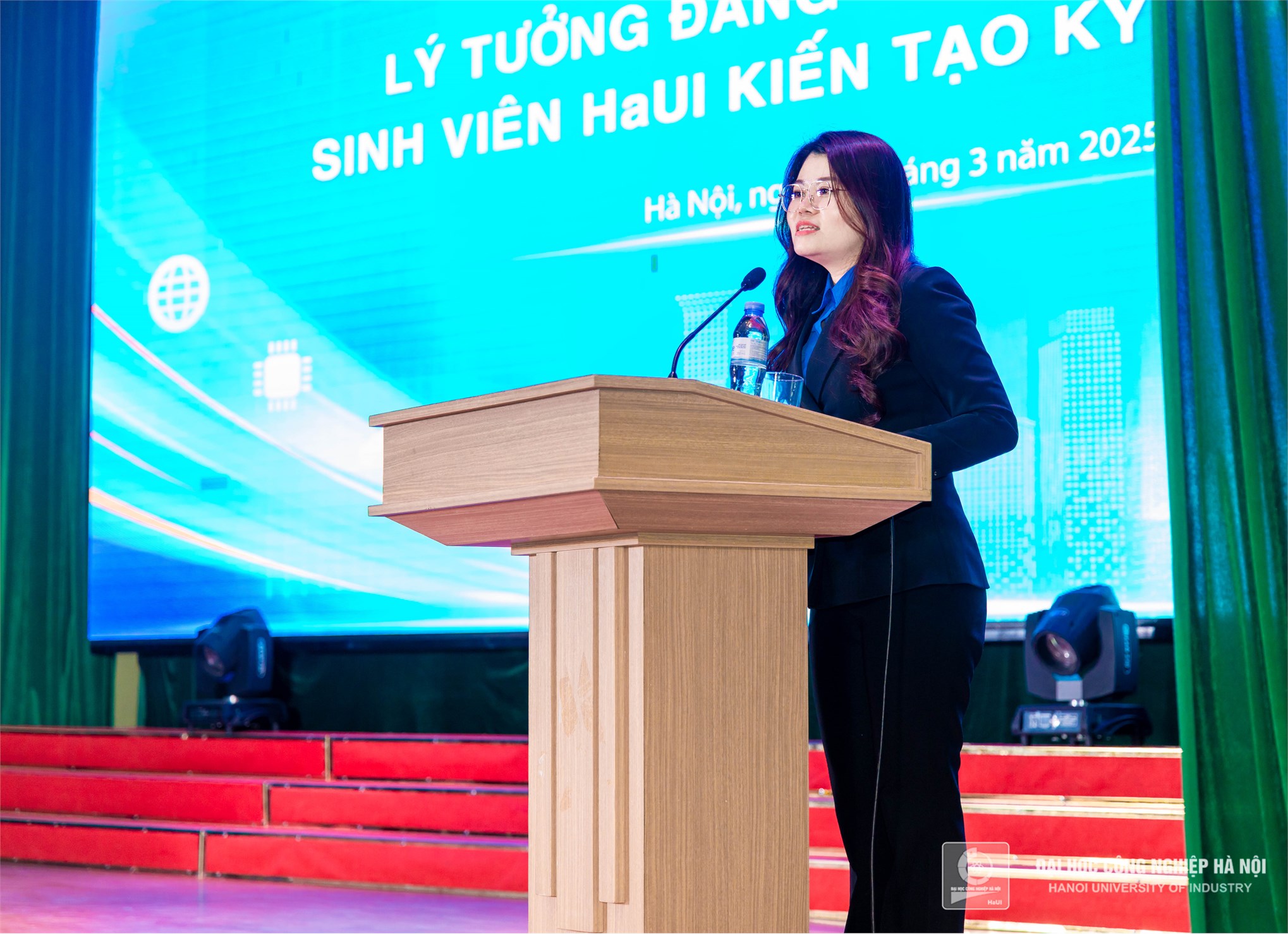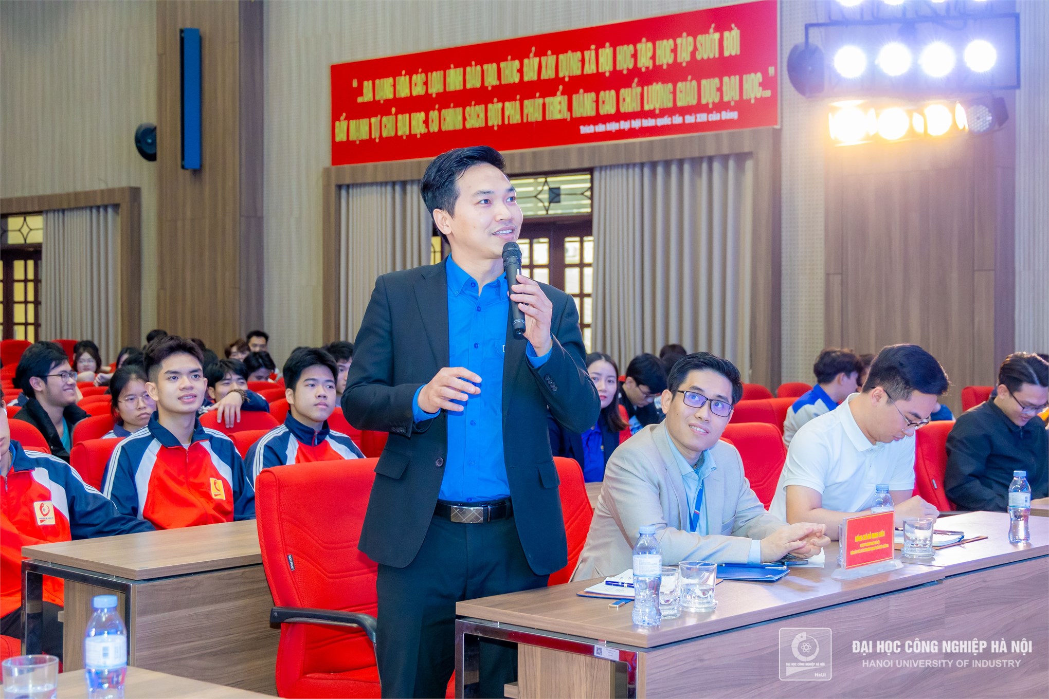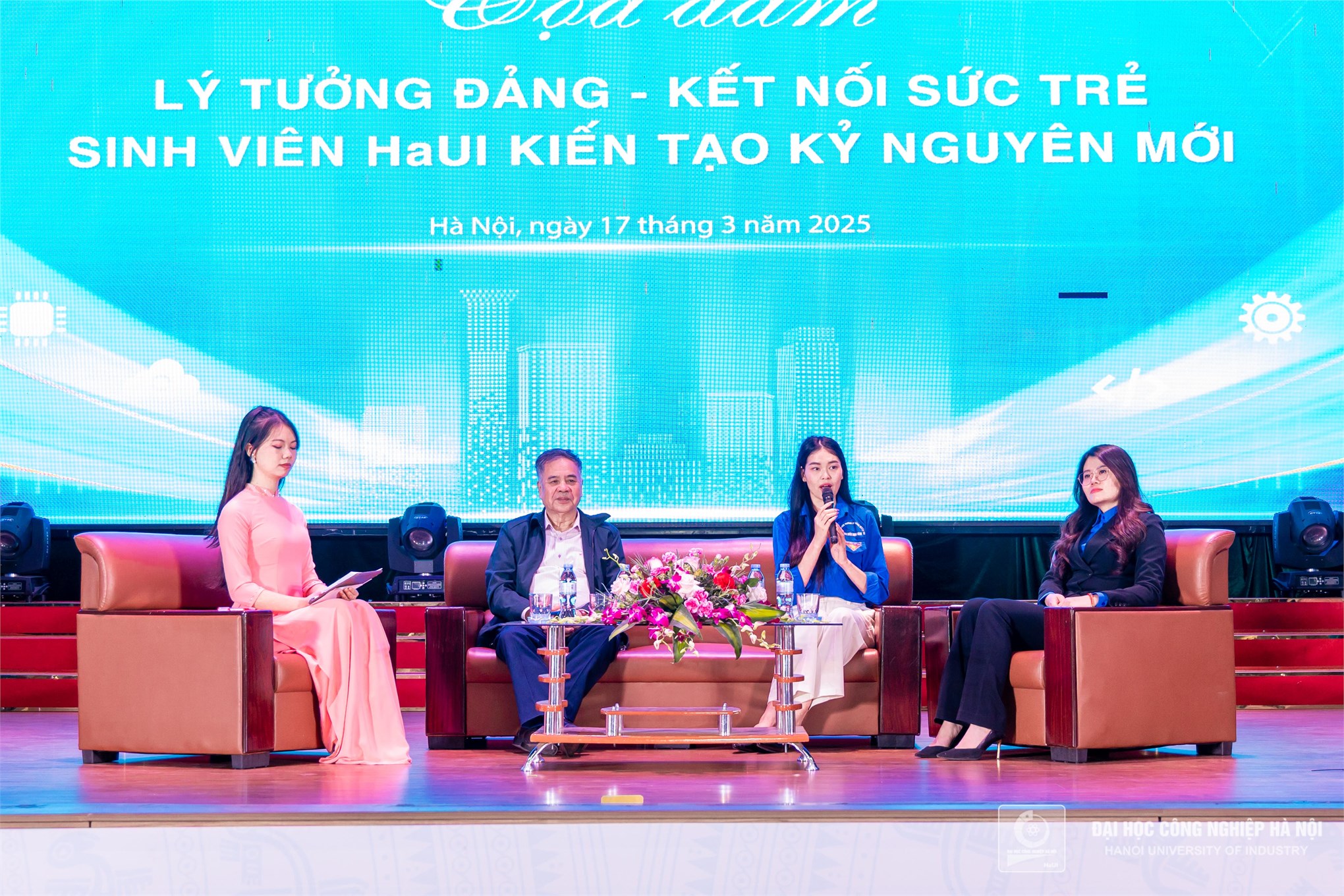 Phát biểu khai mạc, PGS.TS. Lê Hồng Quân - Bí thư Đảng ủy, Chủ tịch Hội đồng trường nhấn mạnh tầm quan trọng của lý tưởng Đảng trong việc định hướng tư duy, hành động cho thế hệ trẻ. Bước vào kỷ nguyên mới, kỷ nguyên vươn mình của dân tộc, sinh viên HaUI không chỉ là những người tiếp thu tri thức mà còn là lực lượng tiên phong, góp phần xây dựng đất nước giàu mạnh. Việc thấu hiểu và hun đúc lý tưởng cách mạng sẽ giúp các em có động lực vững vàng để phát triển bản thân và cống hiến cho xã hội.