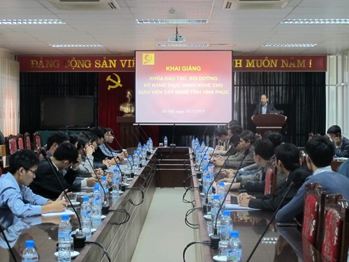 Thực hiện hợp đồng đã được ký giữa Sở Lao động Thương binh và Xã hội tỉnh Vĩnh Phúc và trường Đại học Công nghiệp Hà Nội, chiều 10/12/2013, tại phòng họp tầng 4, nhà A1, nhà trường tổ chức khai giảng lớp bồi dưỡng đánh giá kỹ năng nghề cho giáo viên tỉnh Vĩnh Phúc.