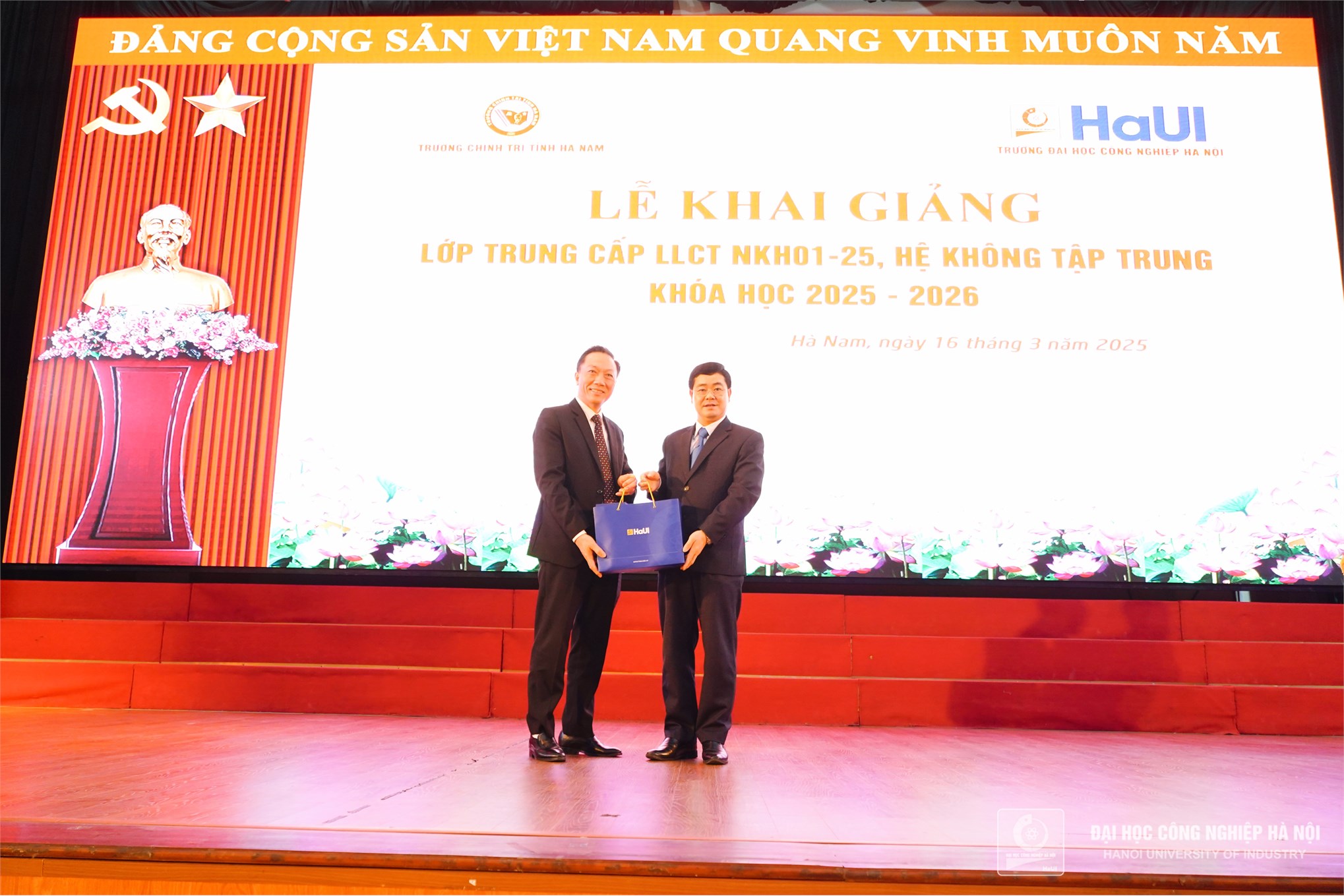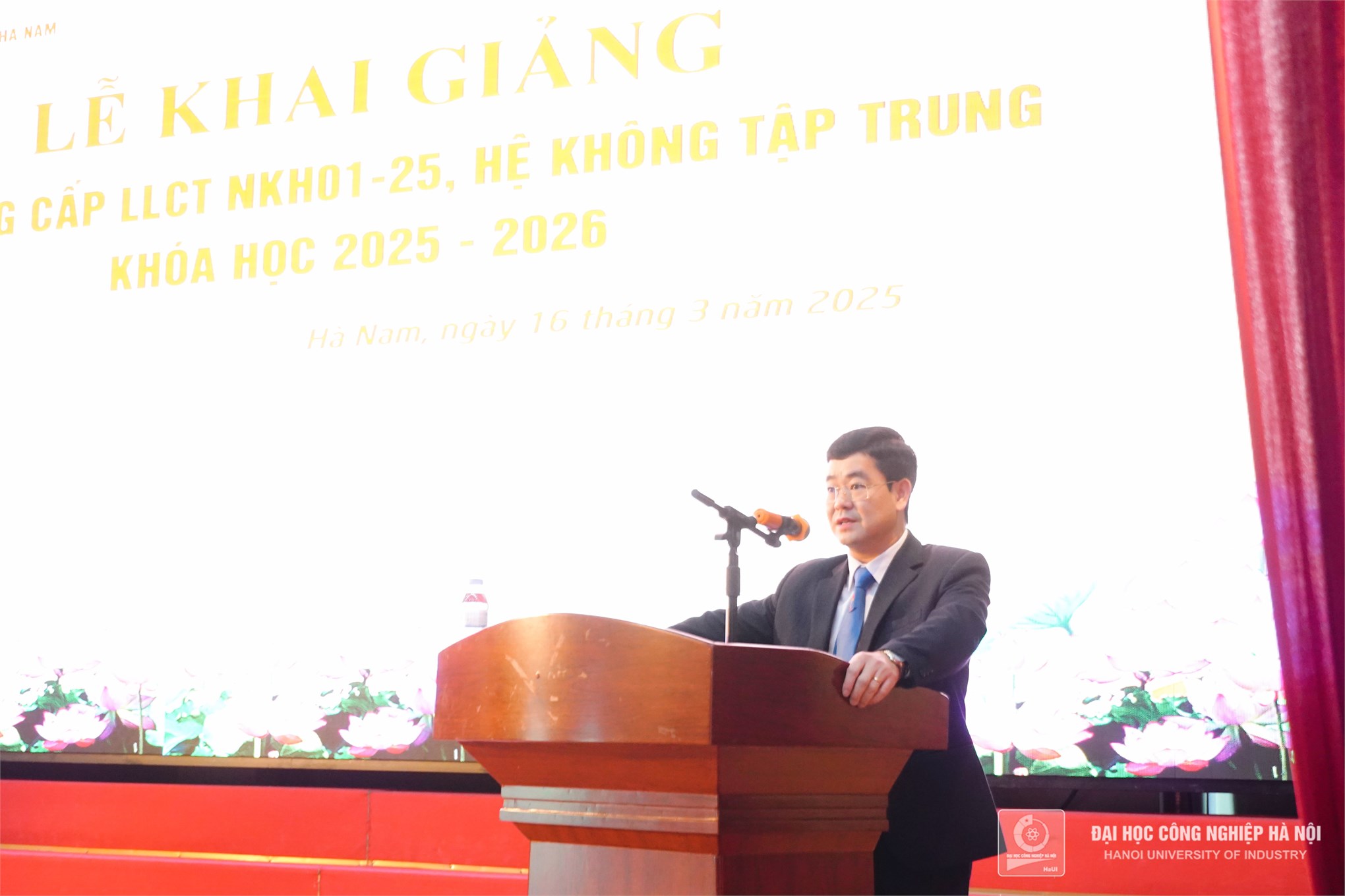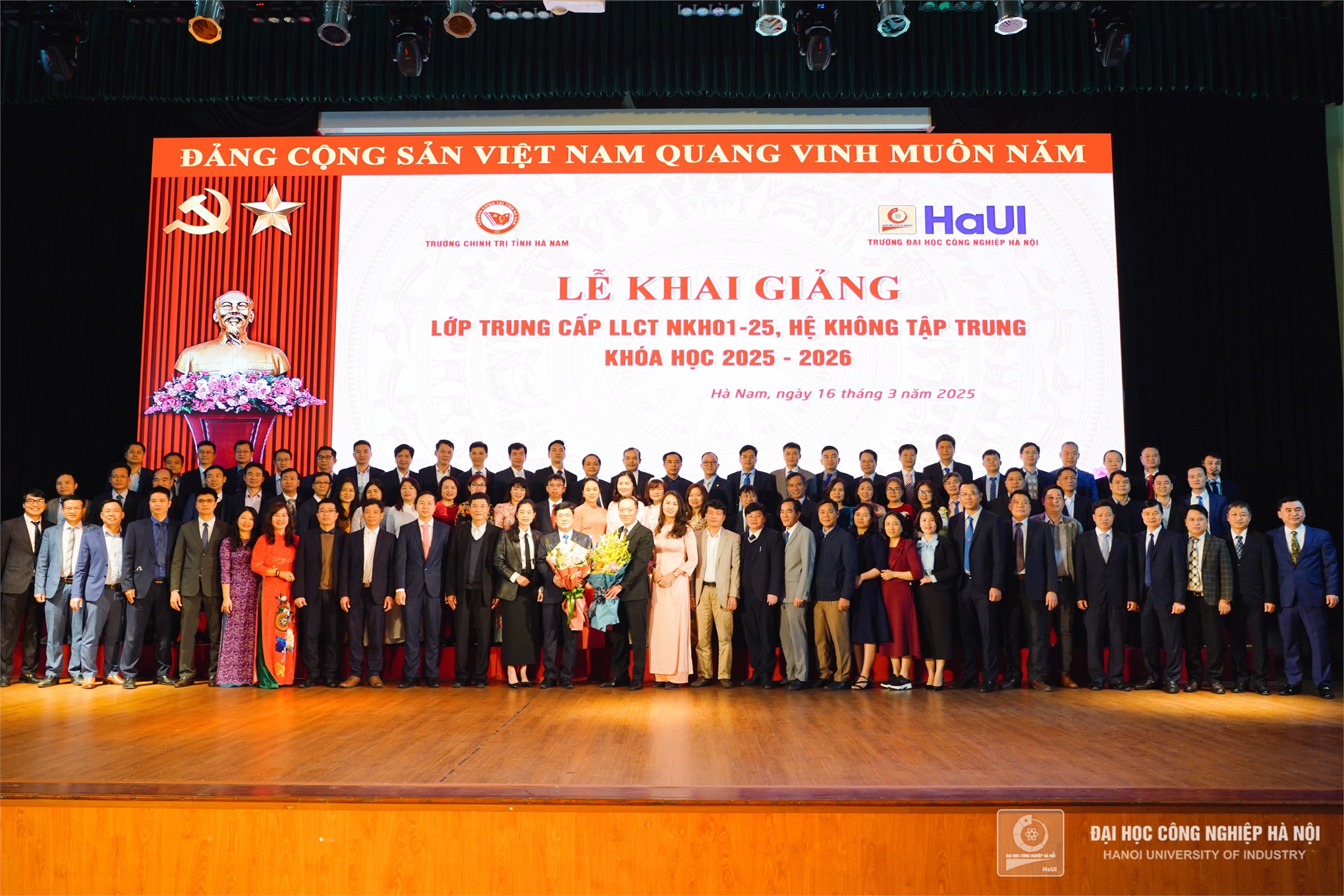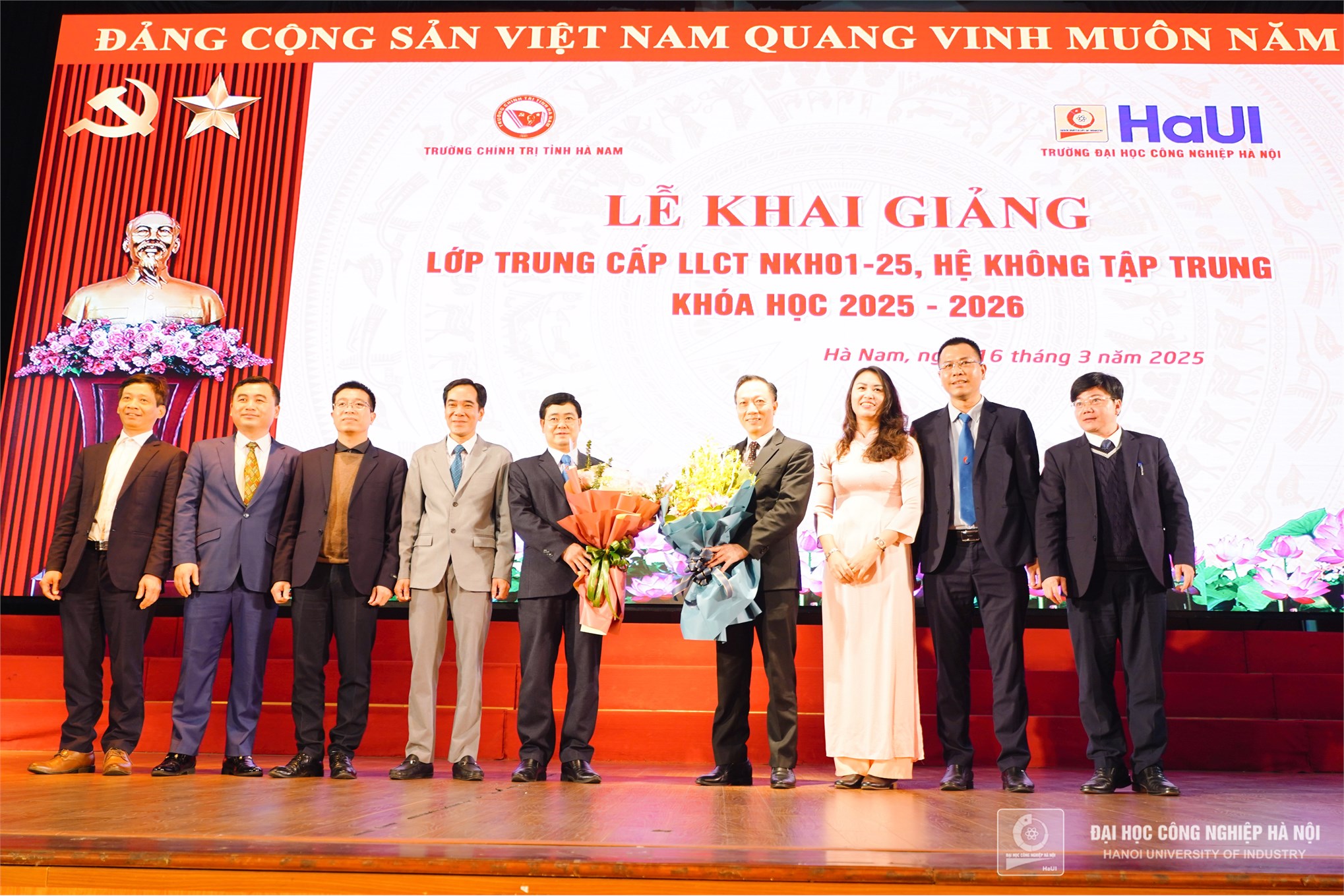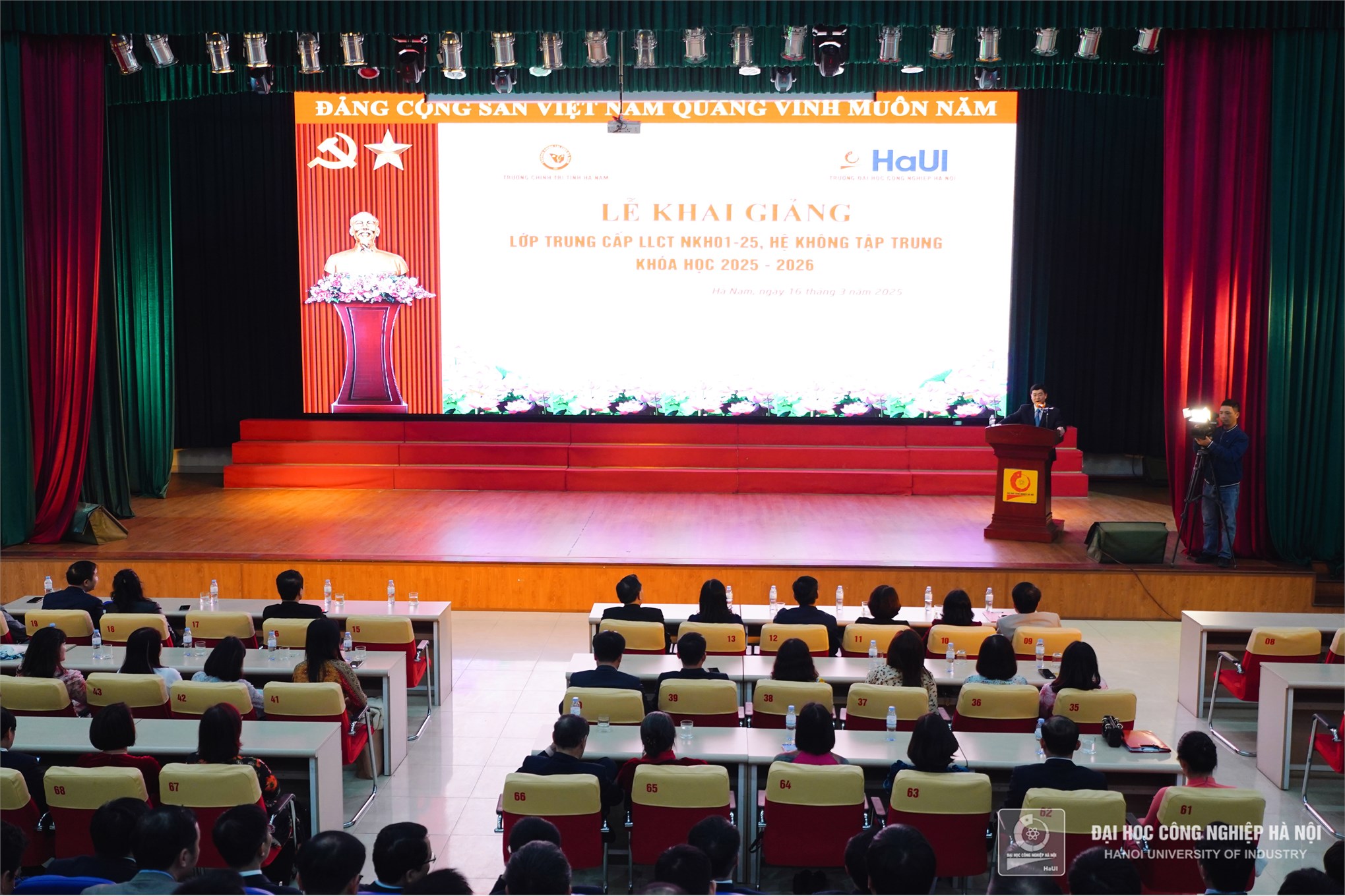 Thực hiện Kế hoạch đào tạo, bồi dưỡng năm 2025, sáng 16/03/2025, tại cơ sở đào tạo Hà Nam của Trường Đại học Công nghiệp Hà Nội (HaUI), Trường Chính trị tỉnh Hà Nam tổ chức khai giảng lớp Trung cấp lý luận chính trị NKH01-25, hệ không tập trung, khóa học 2025 - 2026.