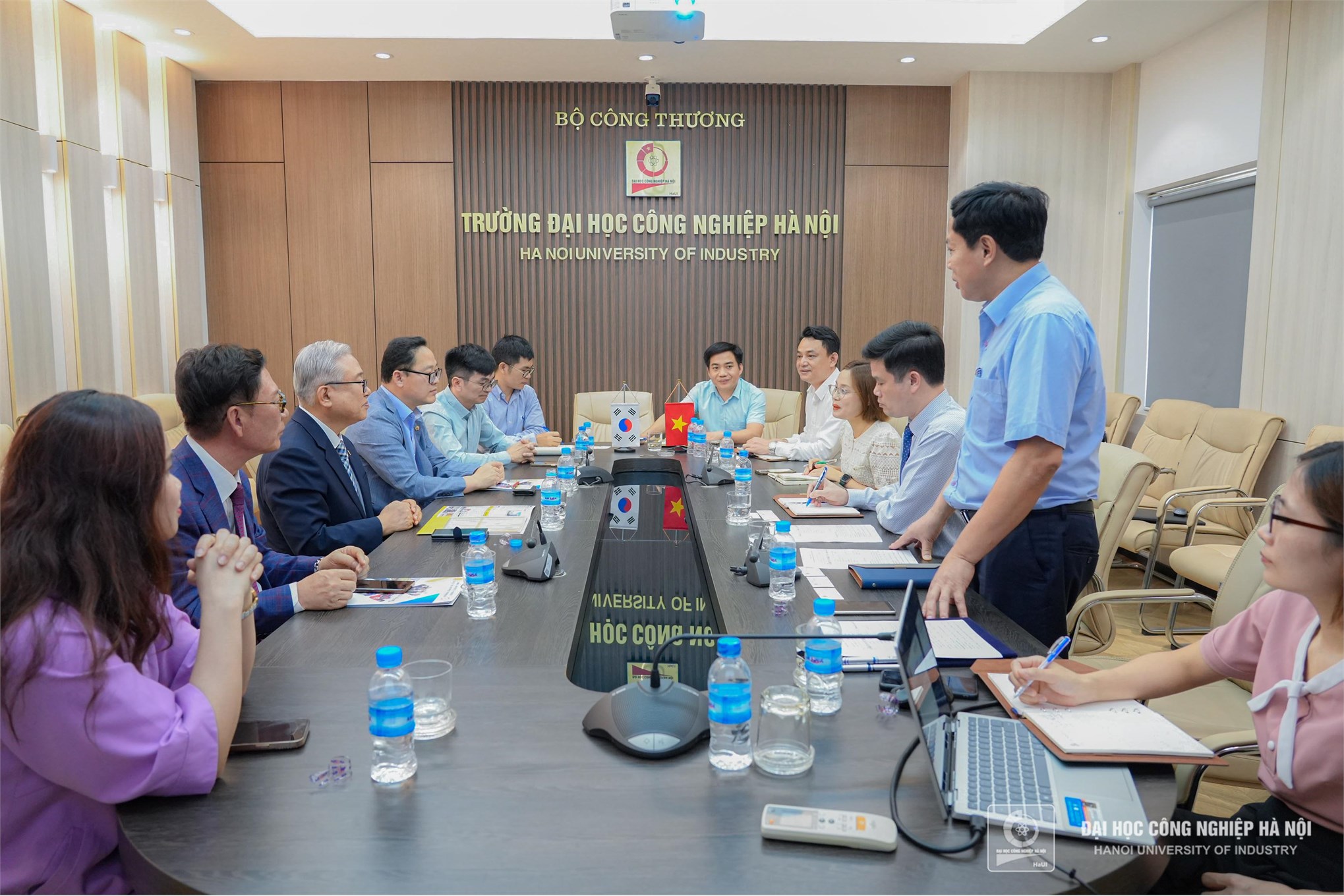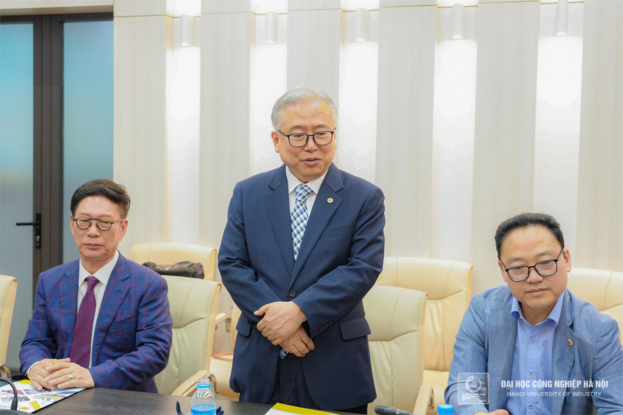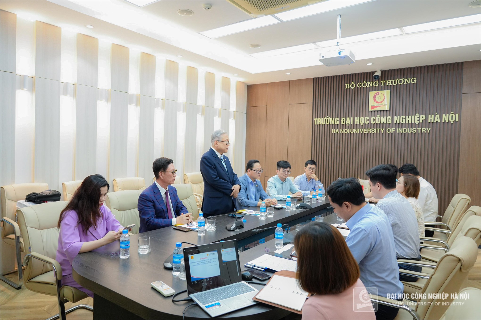 Tại buổi làm việc, TS.Kiều Xuân Thực - Hiệu trưởng Nhà trường bày tỏ vui mừng và chào đón ngài Chủ tịch Hiệp hội kỹ sư lành nghề Hàn Quốc đã đến thăm và làm việc với Đại học Công nghiệp Hà Nội. Hiệu trưởng nhấn mạnh: Hợp tác quốc tế trong giáo dục và đào tạo là một phương cách hữu hiệu để nâng cao chất lượng nguồn nhân lực, Đại học Công nghiệp Hà Nội là một cơ sở giáo dục đại học với truyền thống kỹ nghệ 125 năm xây dựng và phát triển, đào tạo đa ngành, đa lĩnh vực, nòng cốt là lĩnh vực công nghiệp, kỹ thuật, đã khẳng định vị thế, uy tín về đào tạo nguồn nhân lực chất lượng cao ngành Cơ khí trong suốt những năm qua.