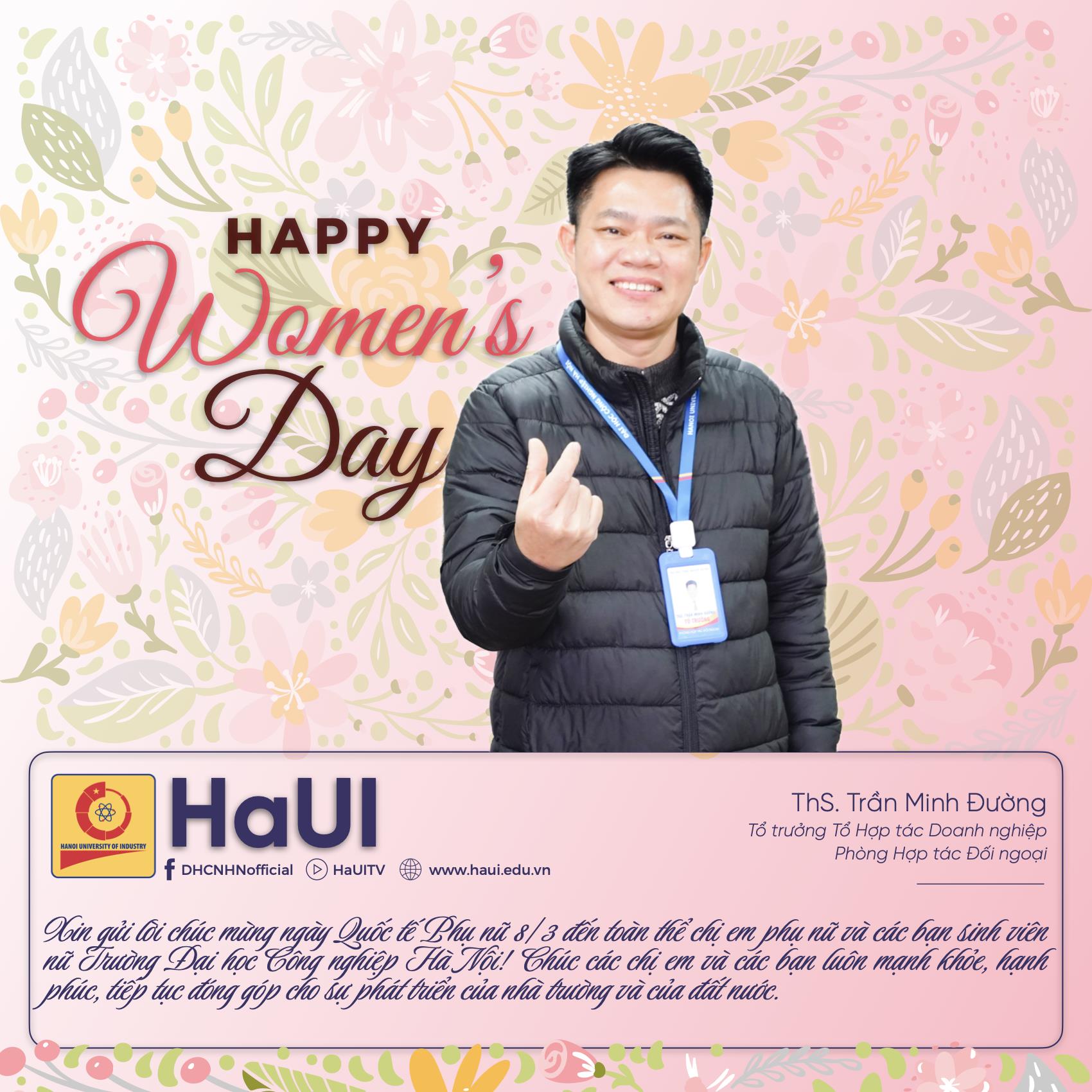 Ngày Quốc tế Phụ nữ là dịp để chúng ta tôn vinh vẻ đẹp, tài năng và sự cống hiến của phụ nữ trên toàn thế giới. HaUI dành những tình cảm đặc biệt cho nữ viên chức, người lao động và nữ sinh nhà trường. Chúc chị em luôn ấm áp và ngập tràn hạnh phúc.