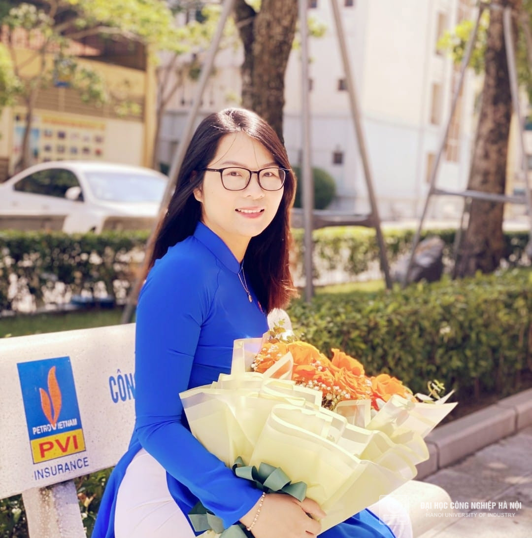 Nữ giảng viên trẻ Cao Thị Huyền Trang trong nắng thu sân trường Đại học Công nghiệp Hà Nội