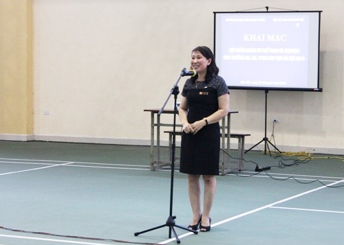 Phát biểu tại Lễ khai mạc, đại diện cho Ban Lãnh đạo trường, bà Bùi Thị Ngân – Phó Hiệu trưởng Nhà trường nhiệt liệt chào đón các đồng chí huấn luyện viên và học viên đến tham dự Hội nghị. Đồng chí cho biết Hội nghị tập huấn không chỉ có vai trò quan trọng trong việc nâng cao chất lượng dạy và học mà còn là sự chuẩn bị sẵn sàng những điều kiện tốt nhất để Giải thi đấu Khiêu vũ thể thao, Thể dục Aerobic các trường Đại học, Cao đẳng và Trung học chuyên nghiệp khu vực Hà Nội năm 2014 được diễn ra thành công tốt đẹp.