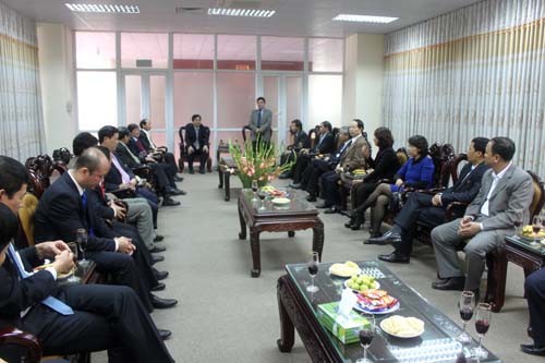 Đón tiếp Đoàn có các đ/c trong Ban Giám hiệu, Đảng uỷ, Chủ tịch Công đoàn, Bí thư Đoàn thanh niên, Trưởng các đơn vị: phòng Tổ chức hành chính, Tài chính kế toán, Đào tạo, Công tác HSSV, Khoa học công nghệ, Hợp tác quốc tế, Khoa Cơ khí, khoa Tại chức, Trung tâm Đào tạo Sau Đại học.