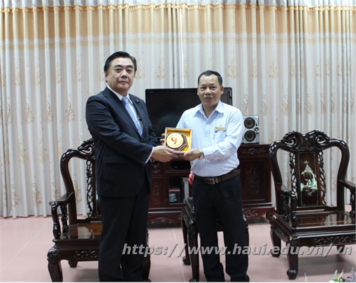 TS. Nguyễn Anh Tuấn – Phó Hiệu trưởng trao quà tặng cho ông Seiji Suzuk Trưởng đoàn công tác Tỉnh Saitama Nhật Bản