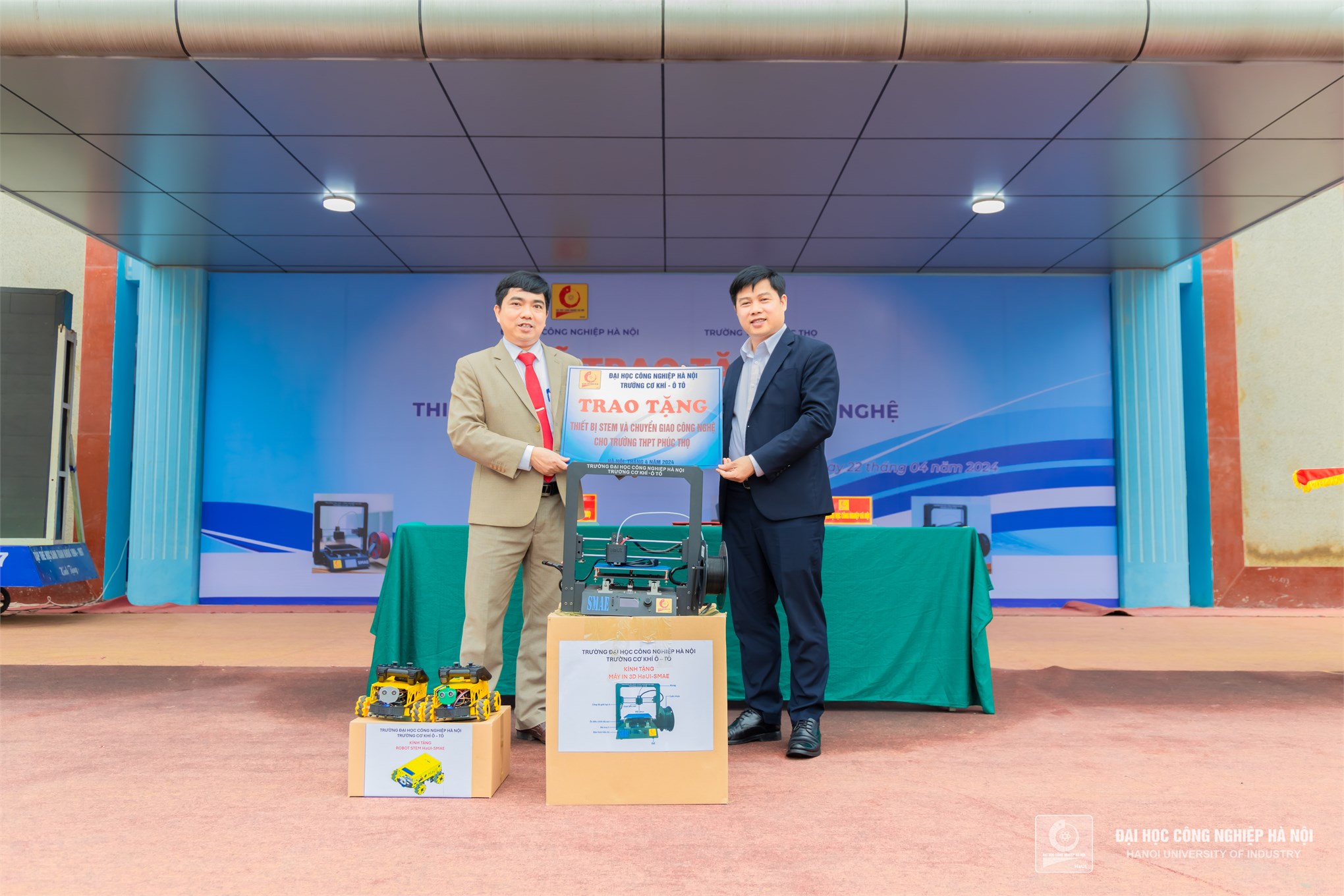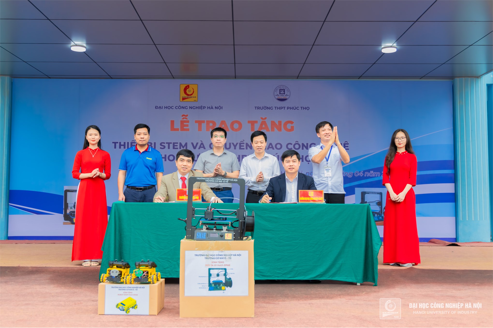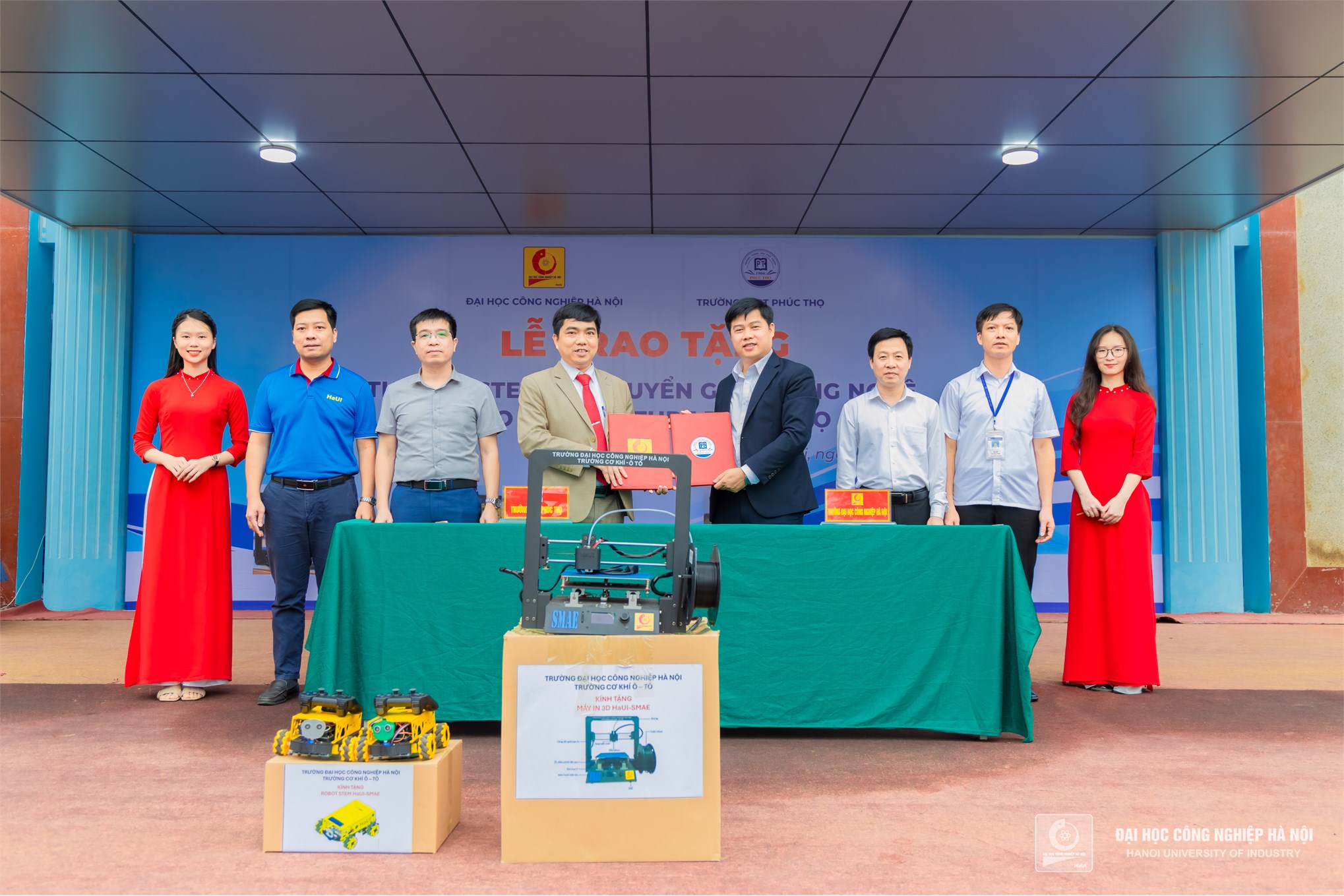Trường Cơ khí – Ô tô, Đại học Công nghiệp Hà Nội trao tặng máy in 3D, robot lập trình điều khiển cho Trường THPT Phúc Thọ