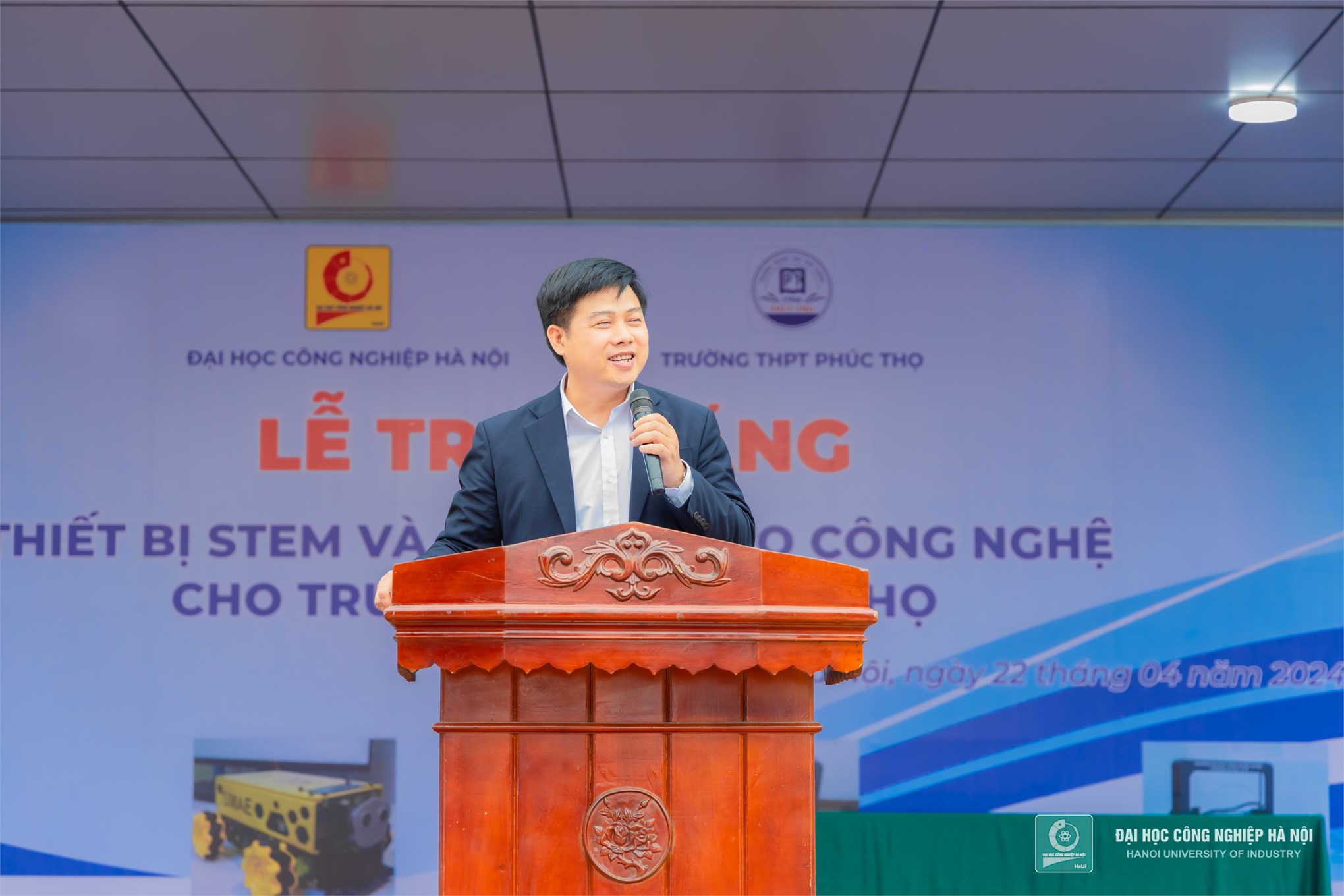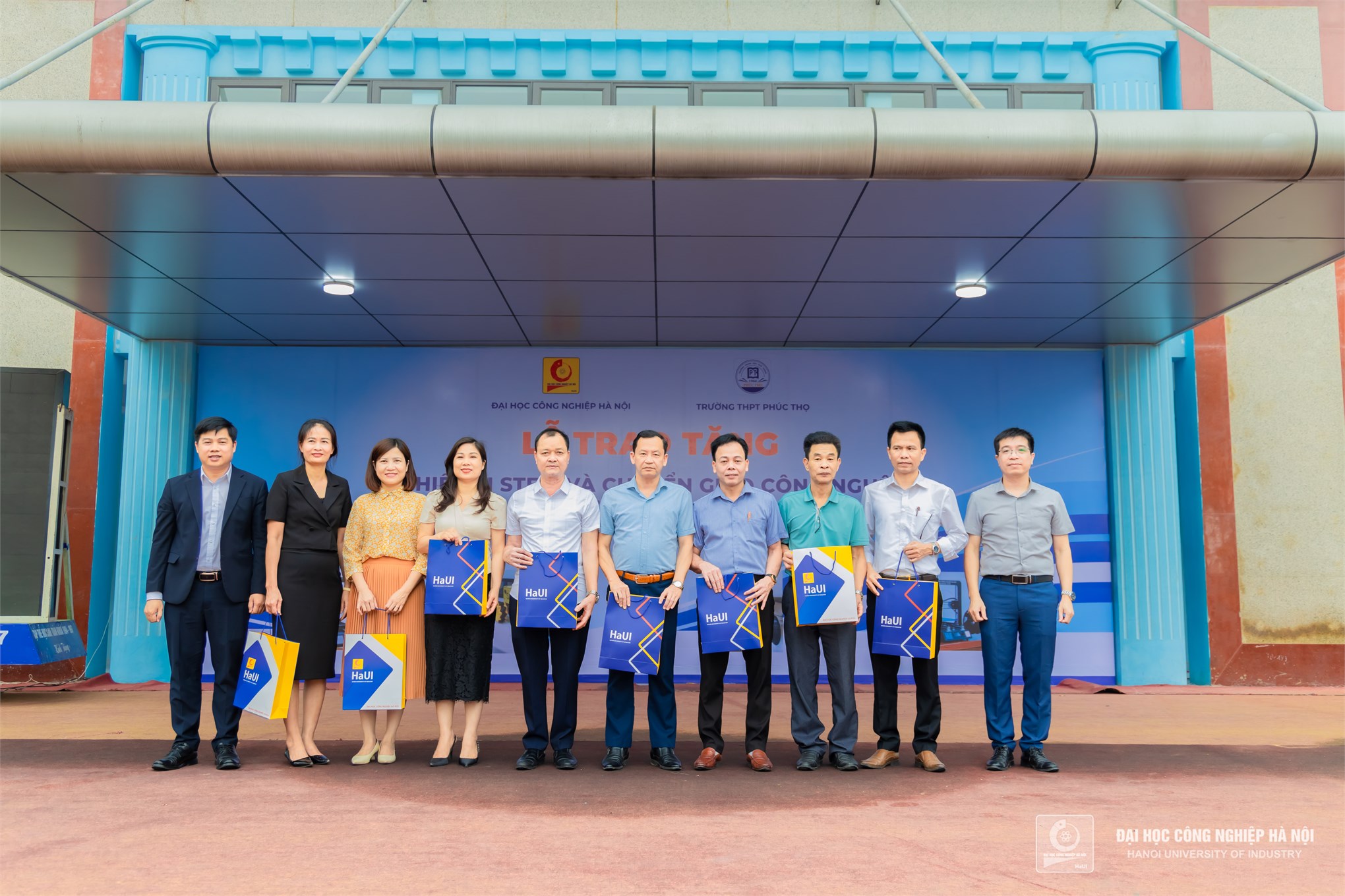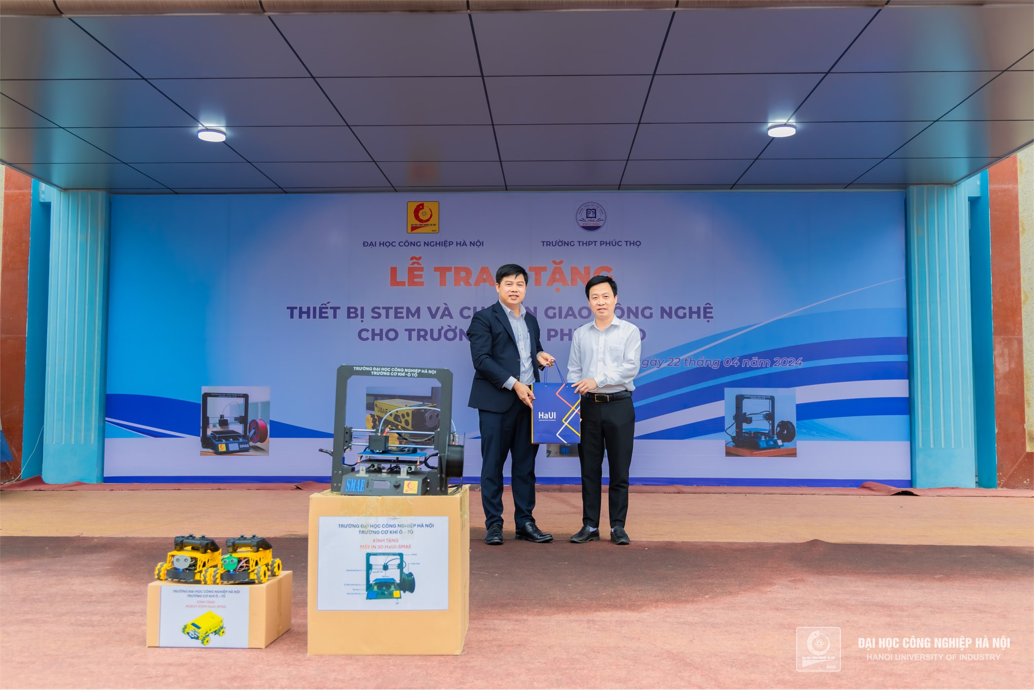 Trường Cơ khí – Ô tô, Đại học Công nghiệp Hà Nội trao tặng máy in 3D, robot lập trình điều khiển cho Trường THPT Phúc Thọ