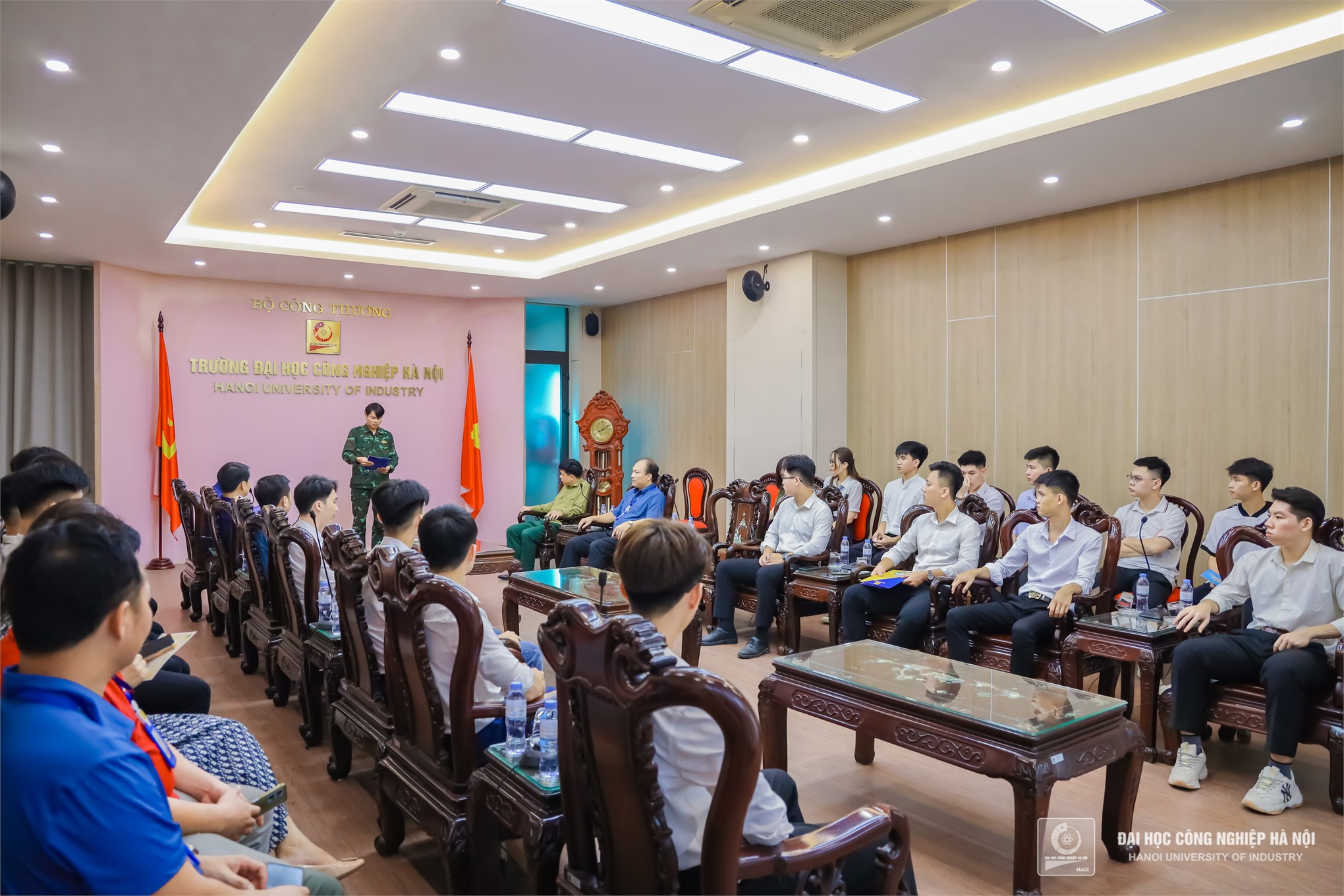 Sáng ngày 17/7, Trường Đại học Công nghiệp Hà Nội tổ chức trao Quyết định của Bộ trưởng Bộ Quốc phòng cho 20 nam sinh viên tốt nghiệp đại học năm 2024 thuộc Trường Cơ khí – Ô tô, Khoa Điện tử và Khoa Công nghệ thông tin đi đào tạo sỹ quan dự bị.