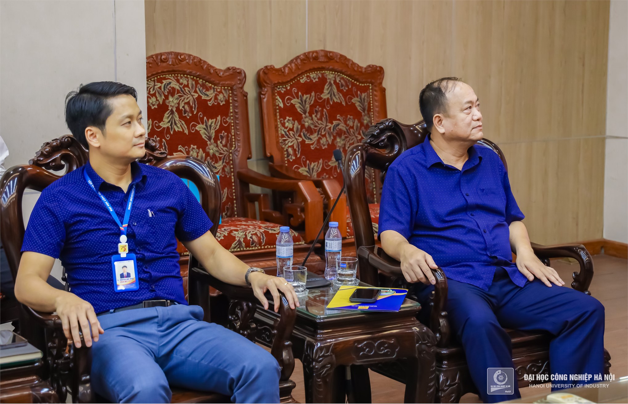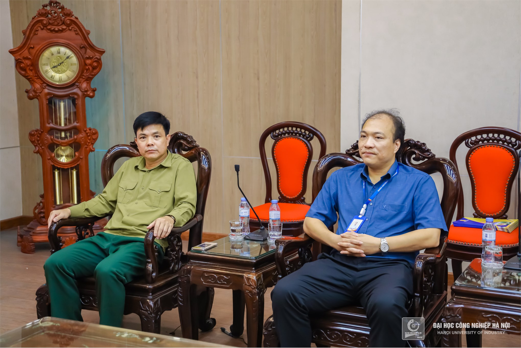 TS. Nguyễn Văn Thiện - Phó Hiệu trưởng, Chính trị viên, Ban chỉ huy quân sự Trường Đại học Công nghiệp Hà Nội và đồng chí Trần Xuân Kiên – Phó giám đốc Trung tâm giáo dục Quốc phòng và An ninh, Chỉ huy Phó Ban chỉ huy quân sự Trường Đại học Công nghiệp Hà Nội trao Quyết định cho sinh viên lên đường đi huấn luyện