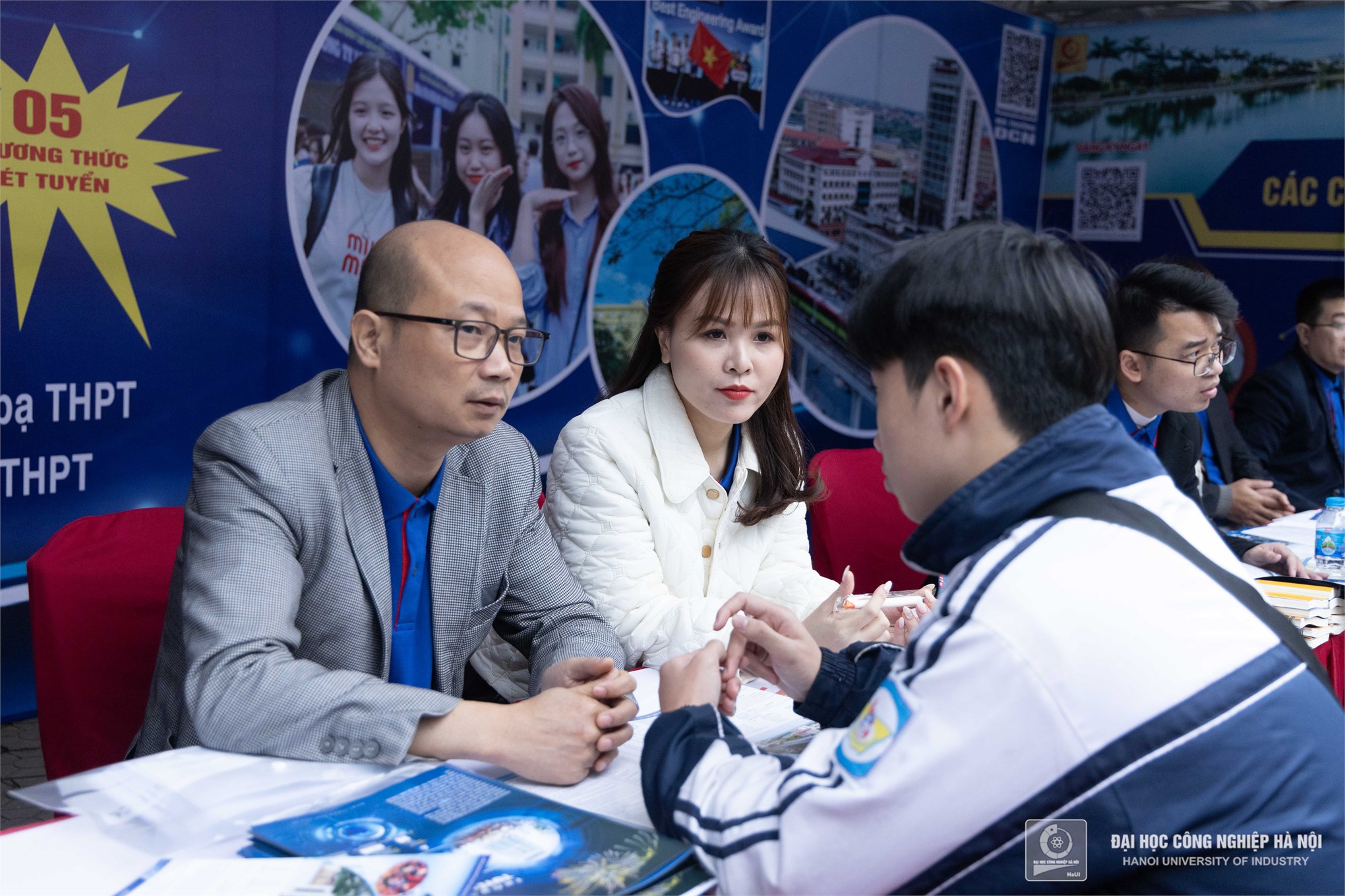 Cùng với hơn 80 gian tư vấn của các trường Đại học, Cao đẳng tham gia chương trình, gian thông tin tuyển sinh của Trường Đại học Công nghiệp Hà Nội đã thu hút rất đông học sinh, phụ huynh tới tìm hiểu, đặc biệt những ngành “hot” của trường như Logictics và Quản lý chuỗi cung ứng, Vi mạch bán dẫn, Công nghệ thông tin,….Những chương trình đào tạo cấp bằng Kỹ sư, chương trình đào tạo liên kết quốc tế 2 + 2 cấp 2 bằng của các ngành Marketing, Quản trị kinh doanh, Quản trị khách sạn của Đại học Công nghiệp Hà Nội được rất nhiều học sinh tìm hiểu, quan tâm.