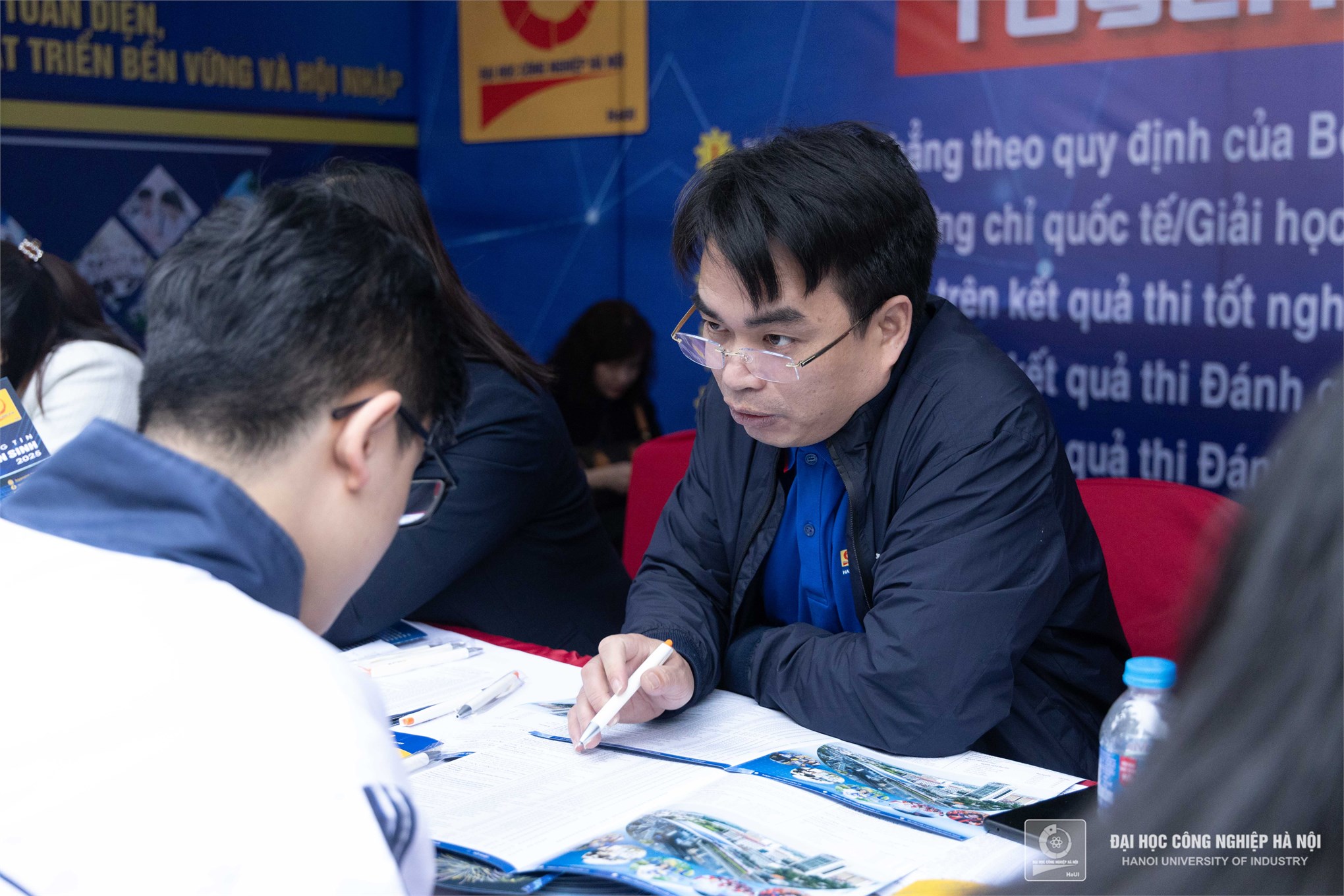 TS. Thân Thanh Sơn – Trưởng phòng Đào tạo tư vấn cho học sinh quan tâm tới các chương trình đào tạo của Trường Đại học Công nghiệp Hà Nội