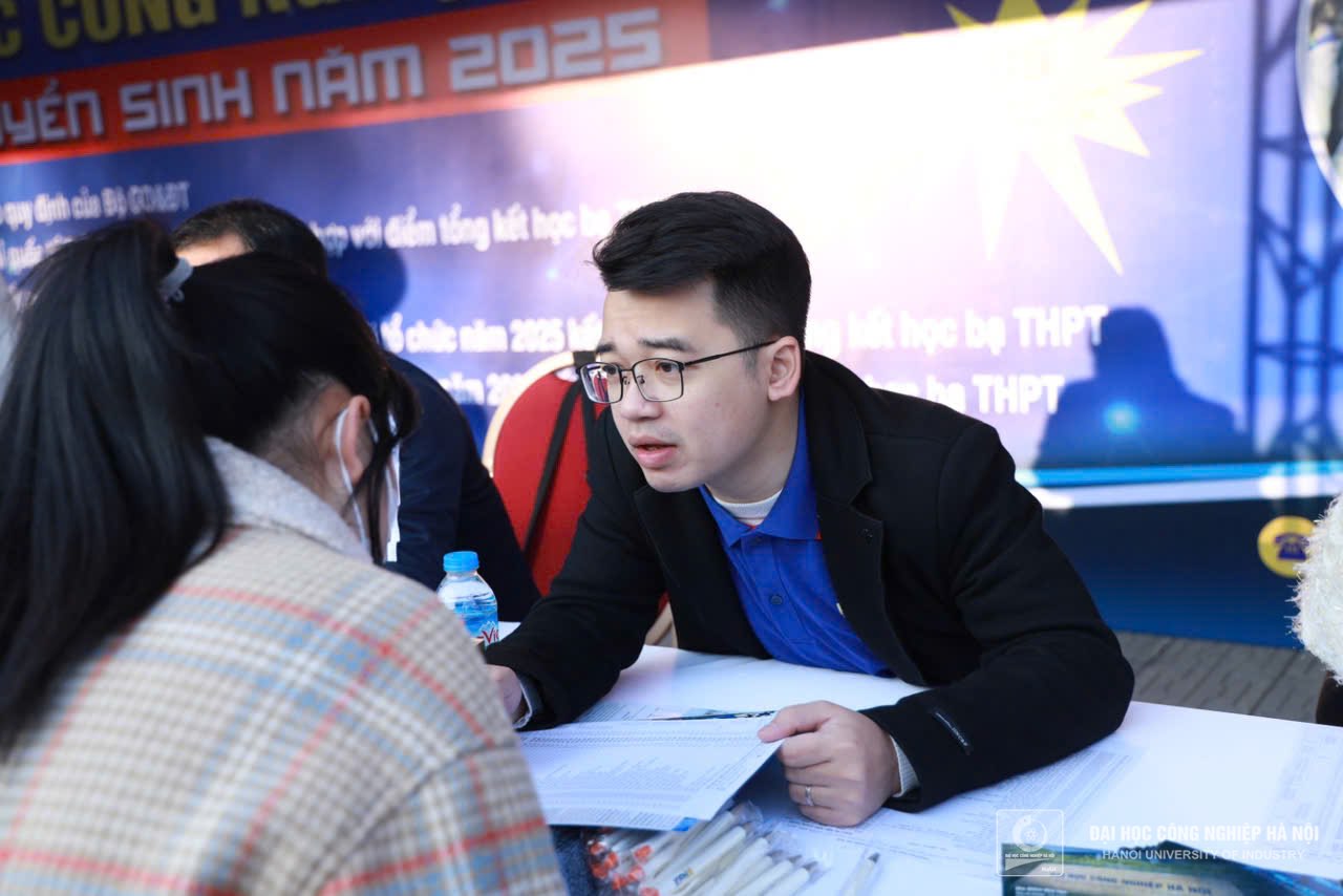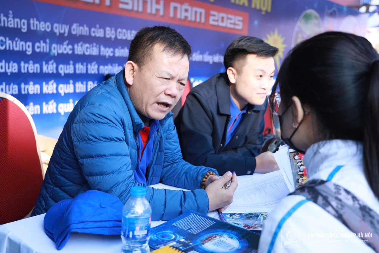 TS. Nguyễn Văn Thiện – Phó Hiệu trưởng Nhà trường cùng cán bộ tư vấn tuyển sinh Trường Đại học Công nghiệp Hà Nội tại Chương trình tư vấn tuyển sinh hướng nghiệp năm 2025