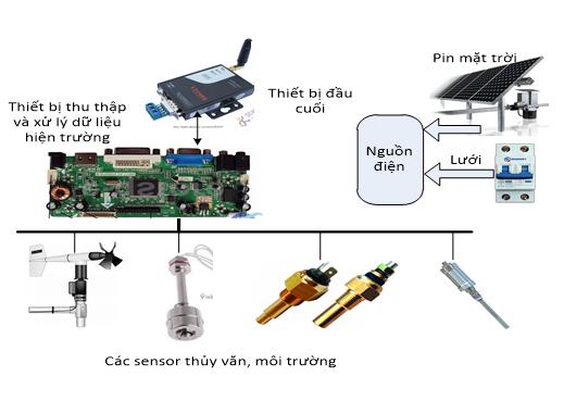 Về phần cứng: thiết bị sẽ làm nhiệm vụ thu thập dữ liệu từ đầu ra các cảm biến đặt trong trạm quan trắc môi trường, sau đó được mã hóa (hình 1). Thiết bị này được thiết kế để làm việc hoàn toàn độc lập với hệ thống gốc, nhằm đảm bảo tính trung thực, an toàn cho hệ thống gốc và độ chính xác của dữ liệu thu được. Tốc độ lấy mẫu được cài đặt tùy ý theo yêu cầu của cơ quan quản lý nhà nước.