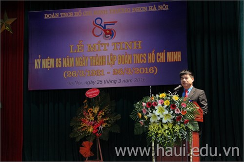 Đó là lời gửi gắm của PGS.TS. Trần Đức Quý - Bí thư Đảng uỷ, Hiệu trưởng Nhà trường tới các đoàn viên thanh niên trong buổi lễ mitting kỷ niệm 85 năm ngày thành lập Đoàn TNCS Hồ Chí Minh do Đoàn TNCS Hồ Chí Minh nhà trường tổ chức vào sáng ngày 25/3/2016.